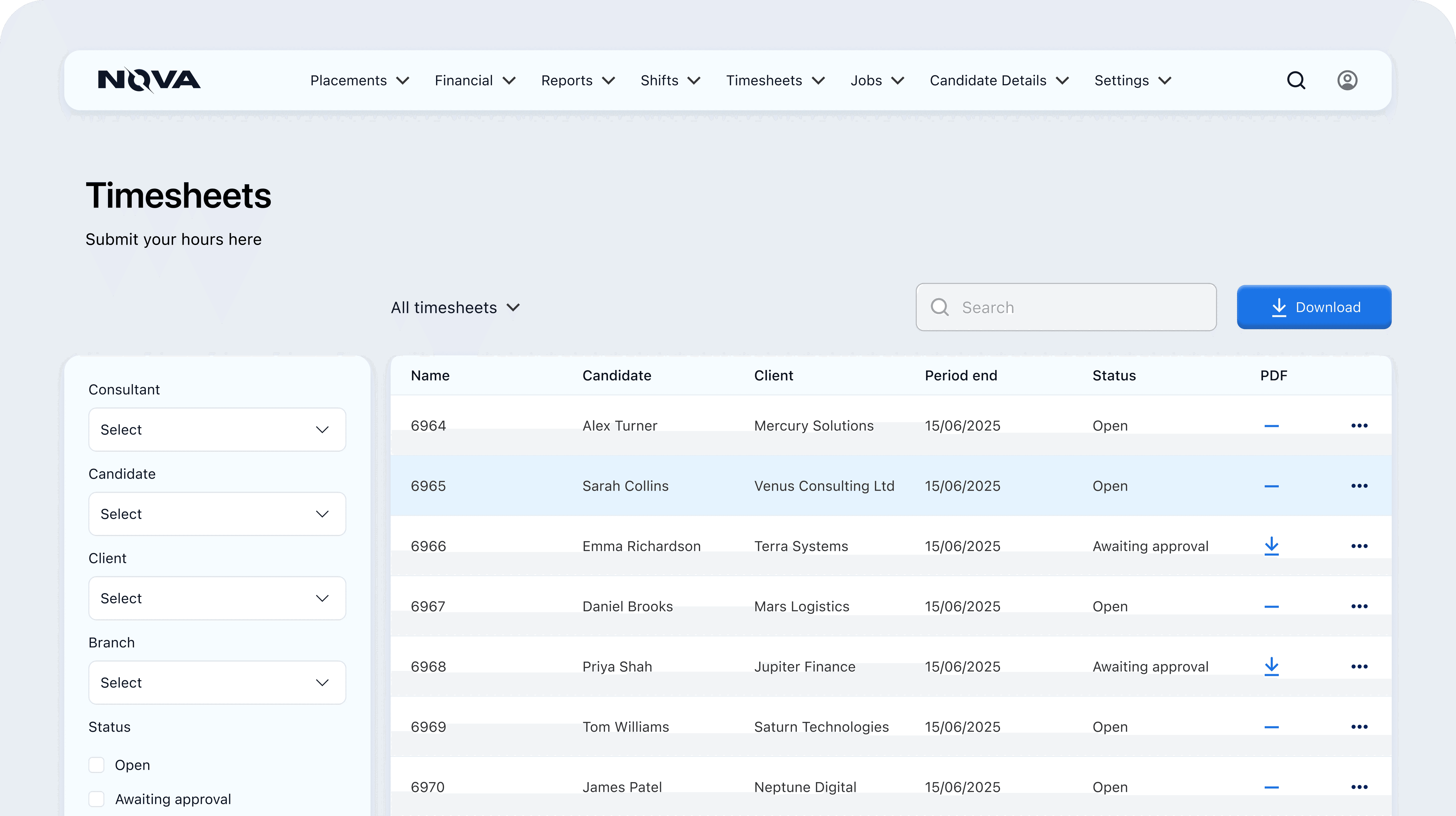 Join hundreds of recruiters streamlining their timesheets with Nova - faster, smarter and built for growth.